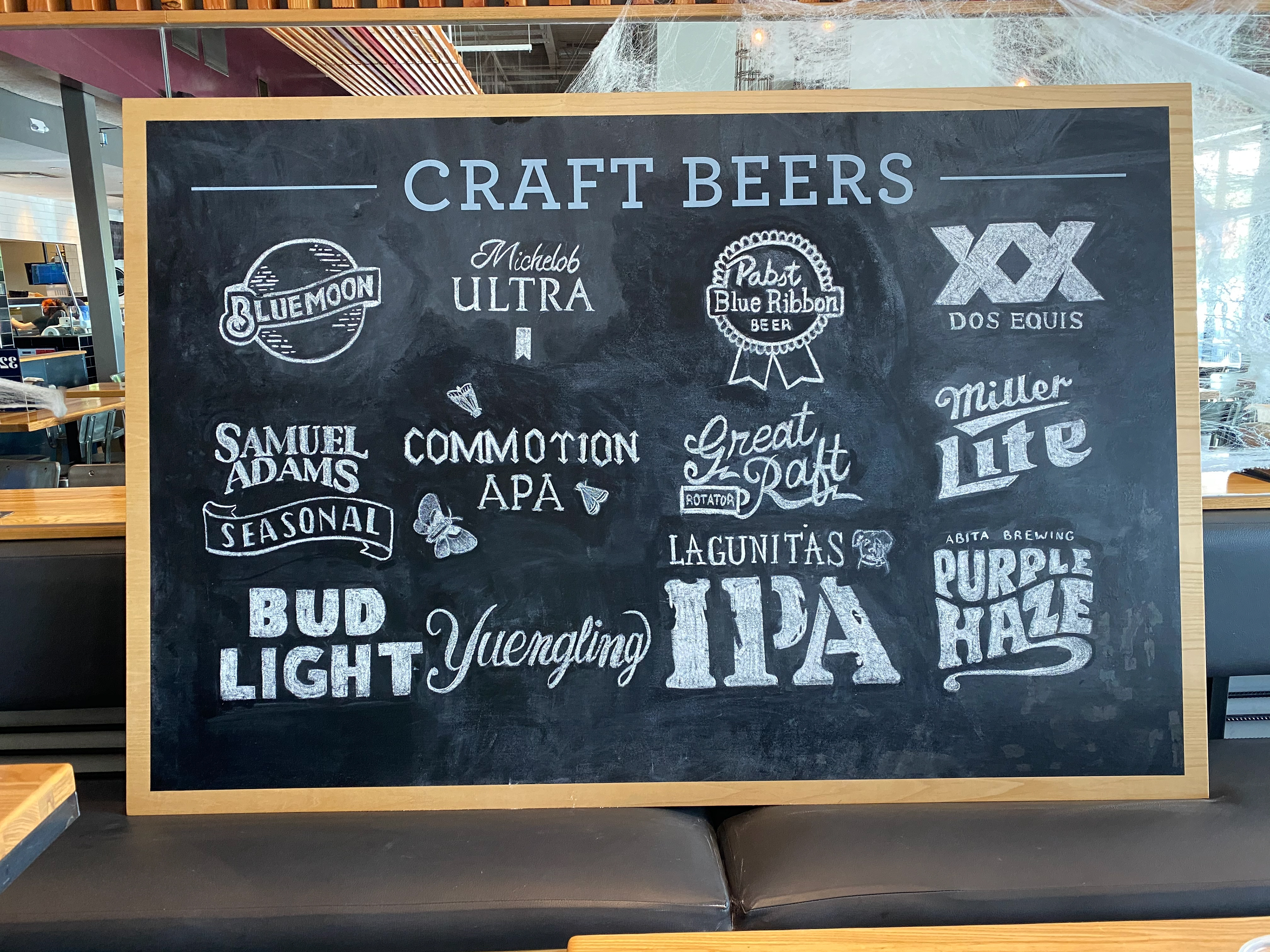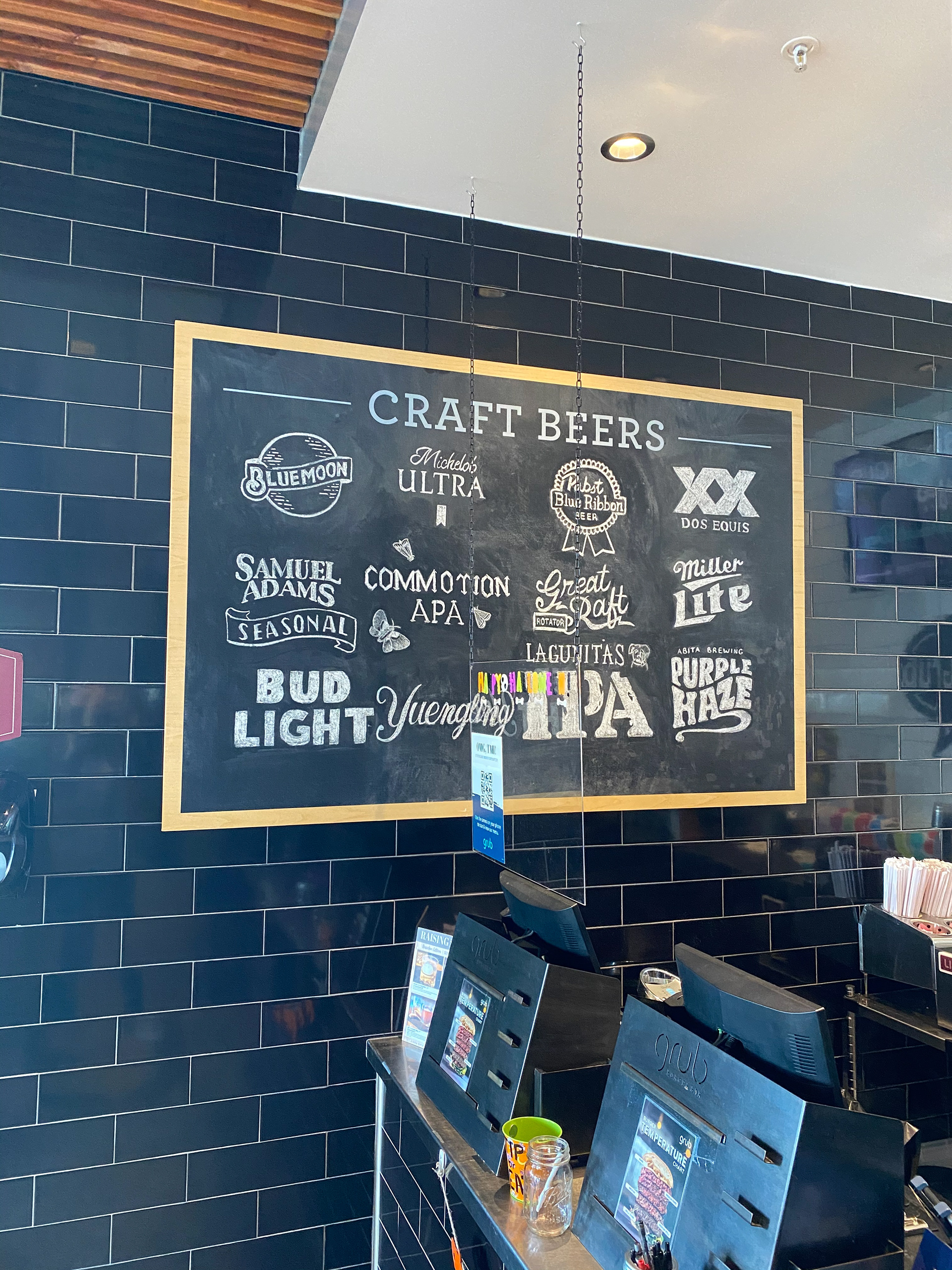 Chalkboard menu illustration for Grub Burger Bar, featuring hand-drawn logos to bring their craft selection to life.