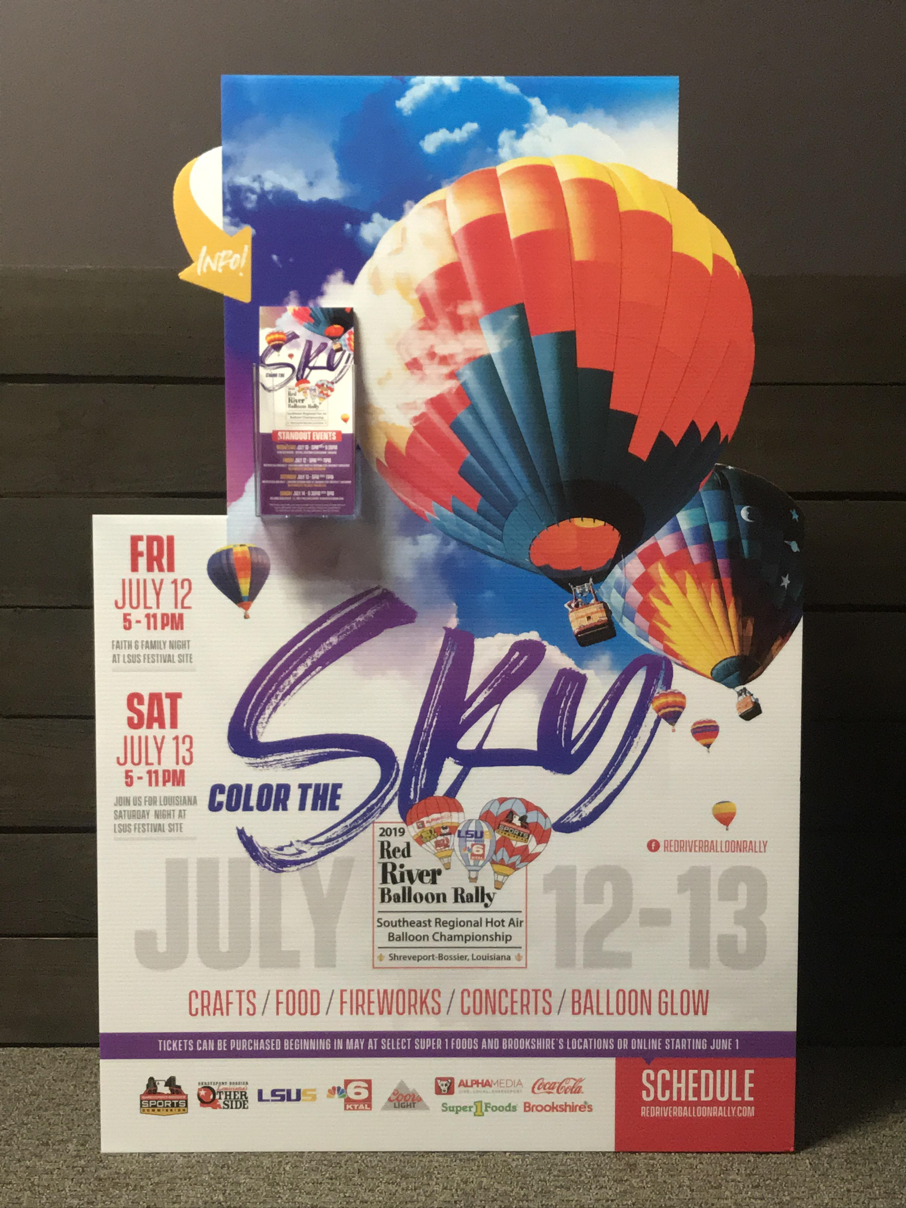 Designed flyers, banners, billboards, social media posts, and print materials for the Red River Balloon Rally event.